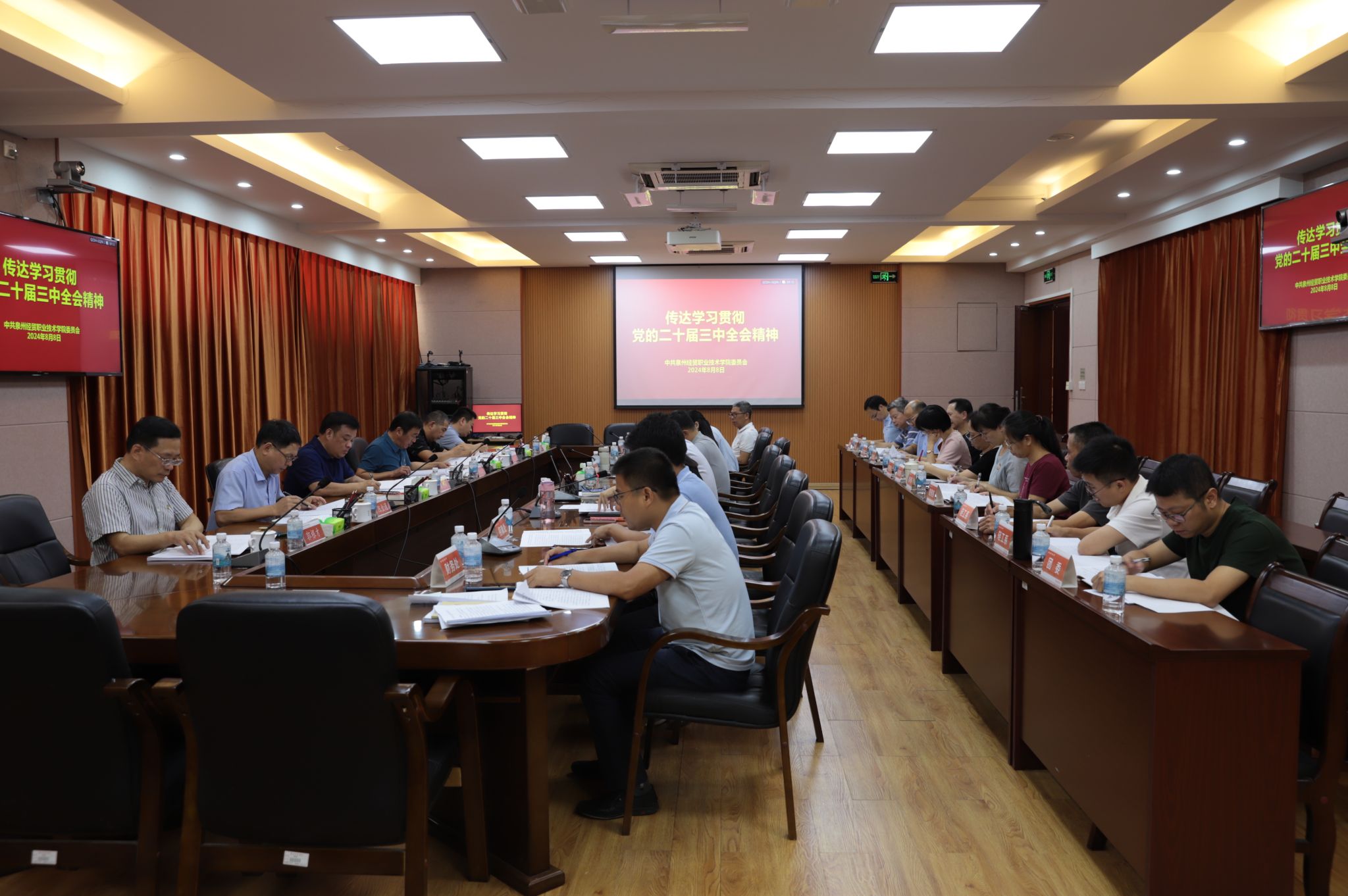 会议强调,要迅速兴起学习宣传贯彻党的二十届三中全会精神的热潮,把党的领导贯穿改革各方面全过程,持之以恒推进全面从严治党,巩固拓展主题教育成果,深化党纪学习教育,深刻认识党的二十届三中全会精神的重大意义,把握高校作为教育、科技、人才重要结合点的特殊地位,准确领会职业教育改革创新的方向,紧密对接泉州市推动高等教育高质量发展战略部署要求,通过加强组织领导、强化宣传引导、深化实践探索、巩固党风廉政建设等途径,一体推进学院办好学、治好校、育好人。
