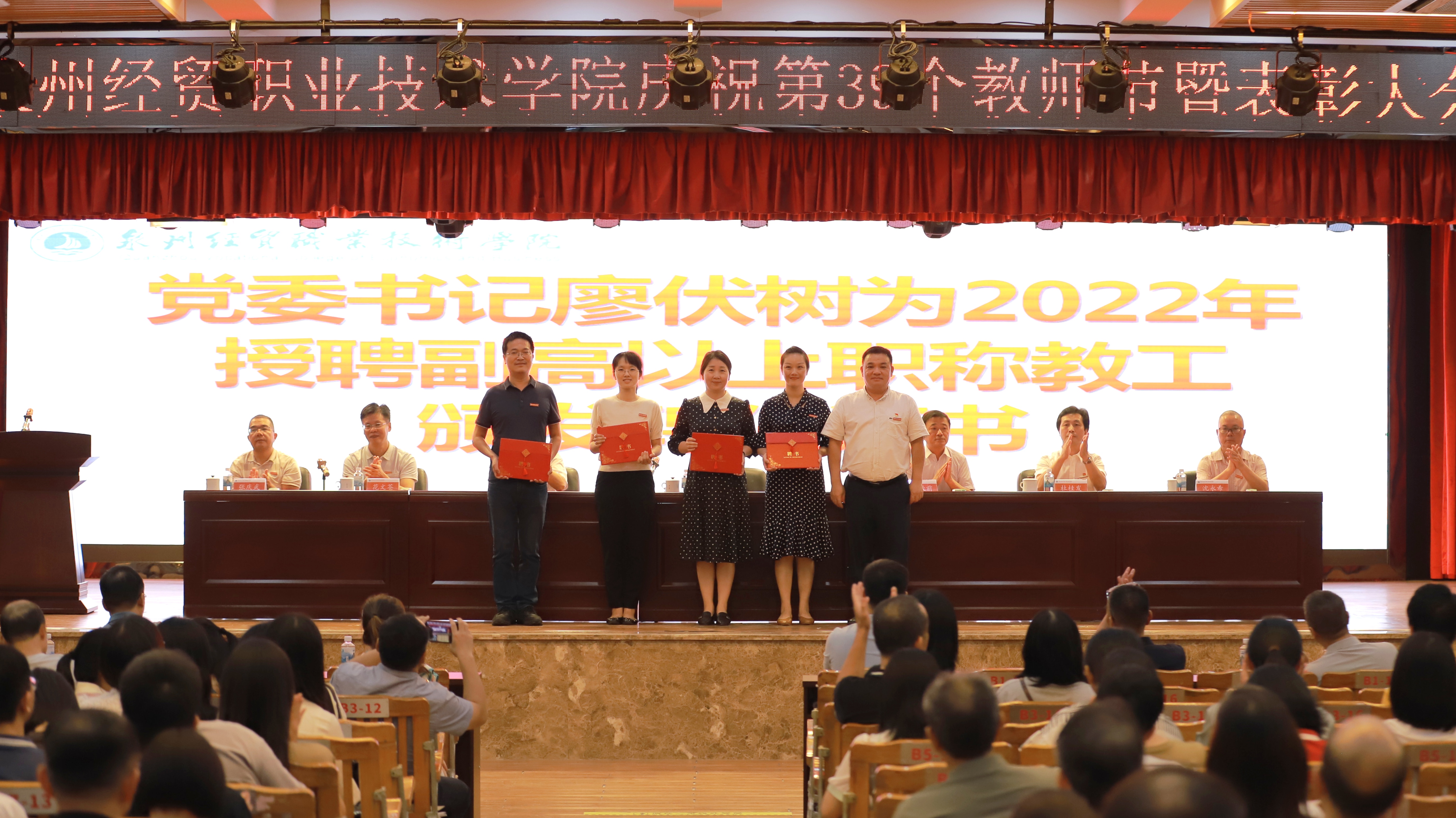 躬耕教坛,强国有我。2023年9月8日,我校在大礼堂召开庆祝第39个教师节暨表彰大会。大会表彰了在教育教学、科研竞赛、新闻宣传、思想政治等方面作出突出贡献的教师集体和个人,并为2022年受聘副高以上职称教工颁发聘任证书。